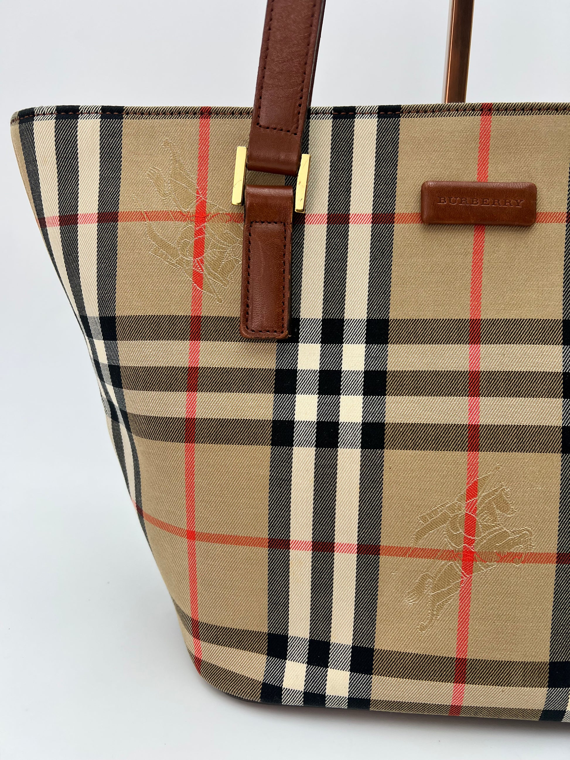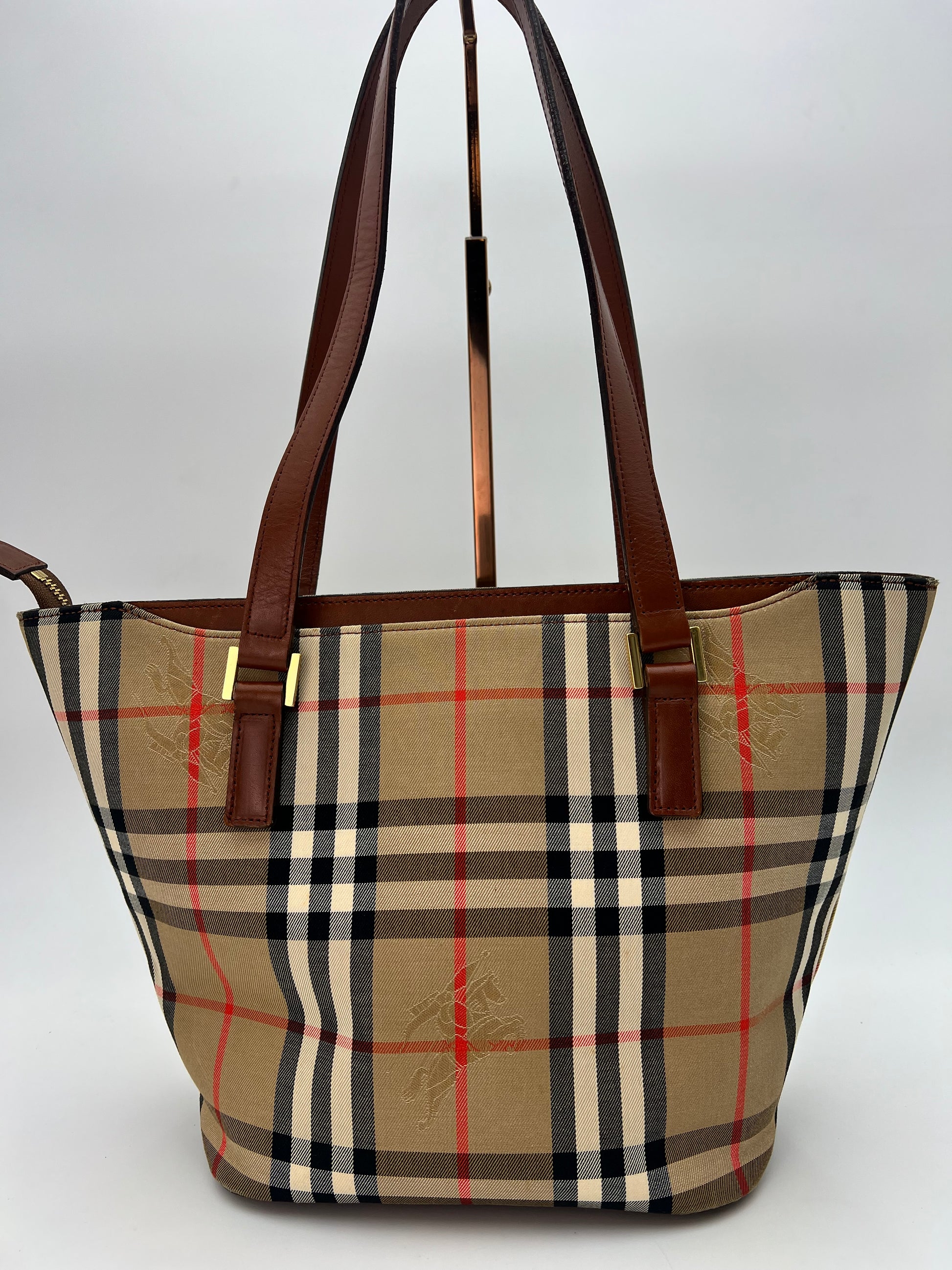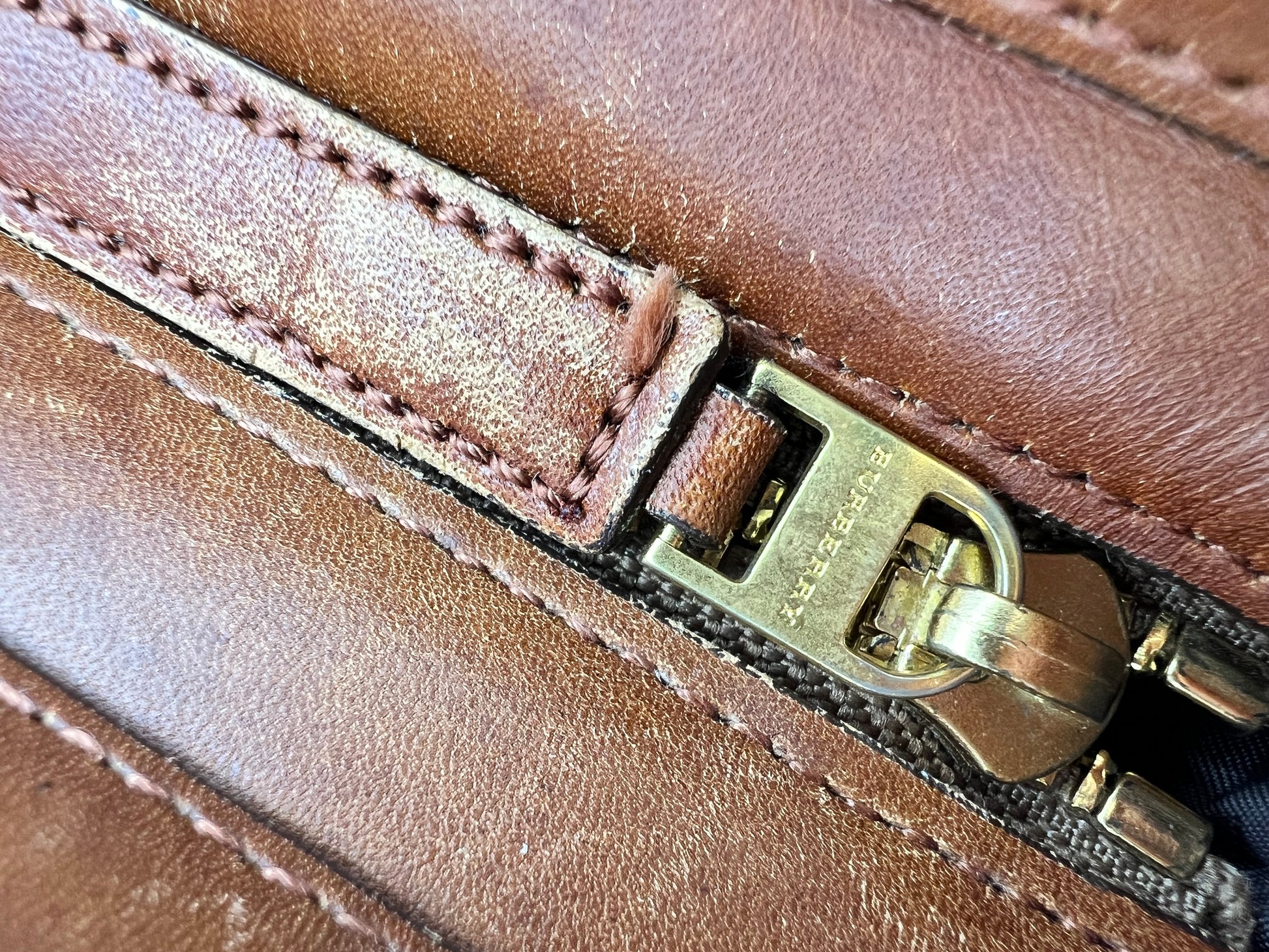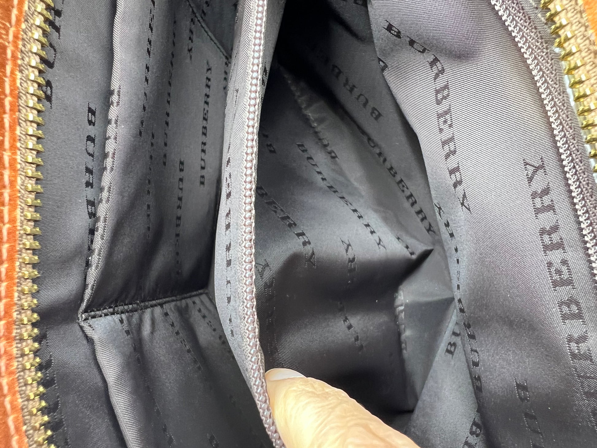 The lovely classic Burberry check pairs wonderfully with the leather in this perfect size shoulder bag. The leather straps have been restored, while the exterior canvas and interior lining are in excellent condition! One small stain on the back of the bag (see pic). Please review all photos carefully and feel free to ask questions.