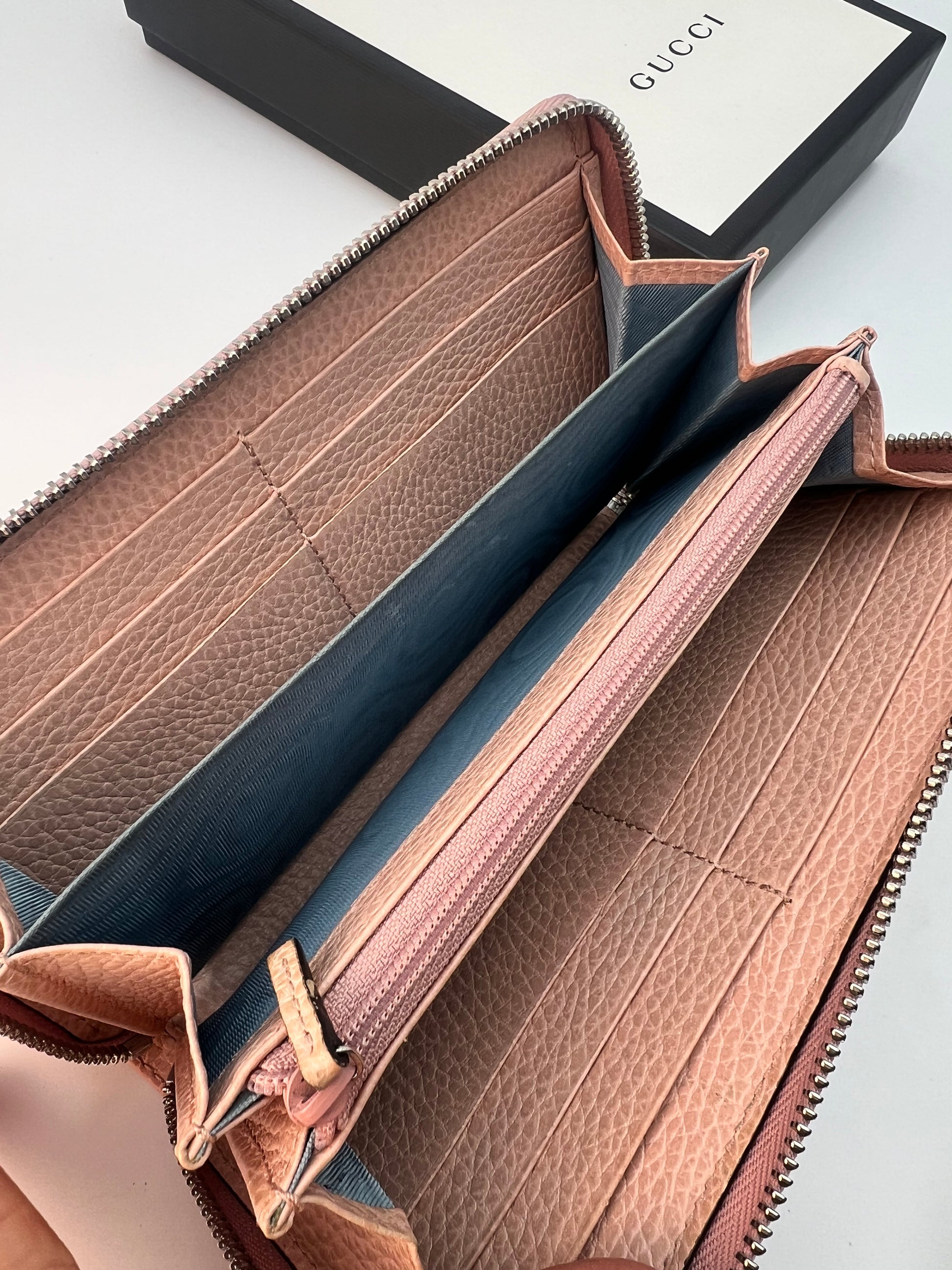 Verly lightly used blush Gucci Marmont wallet. Please review photos carefully, there are no flaws, just light use throughout. Comes with box, excellent for gifting!