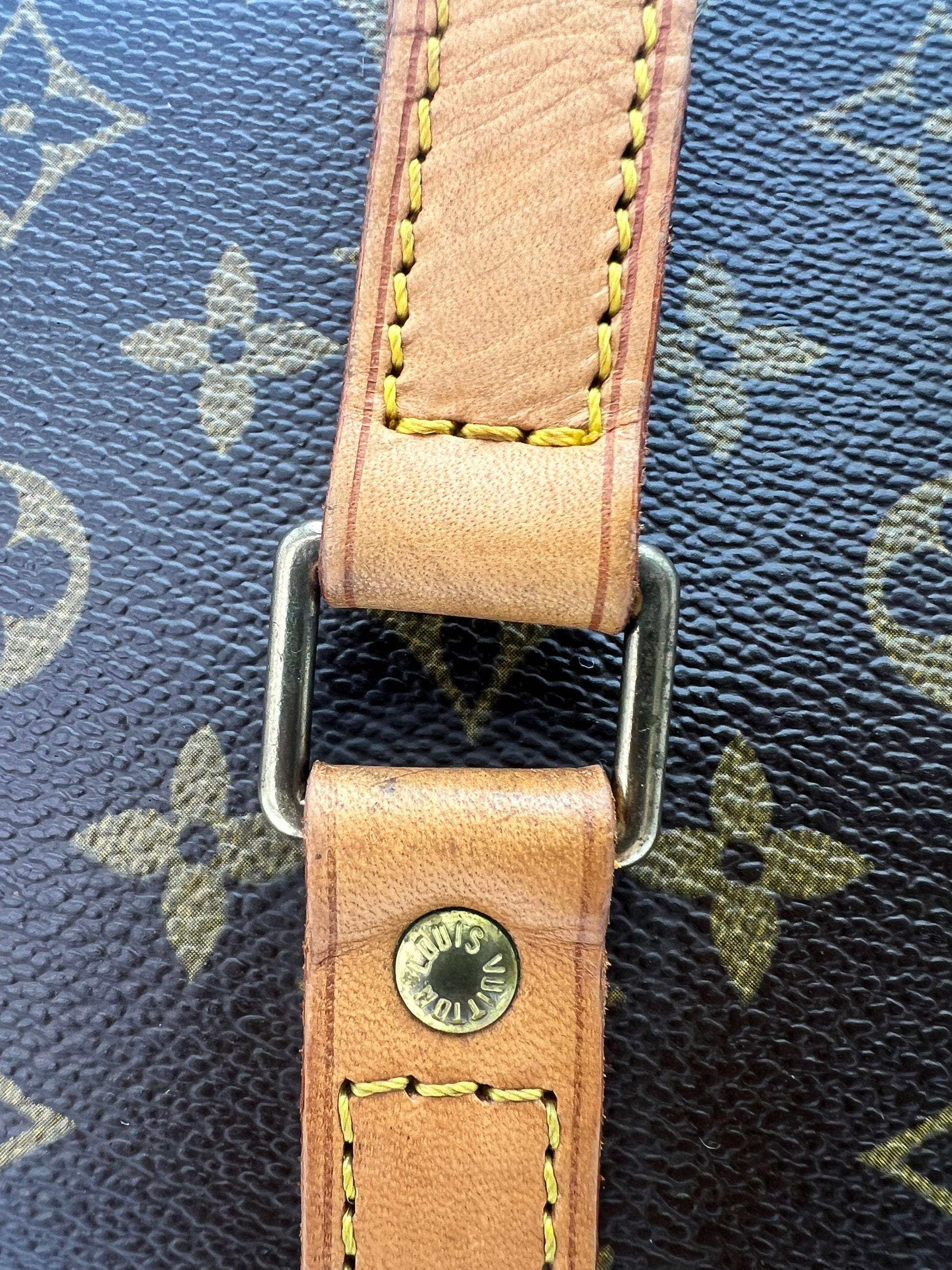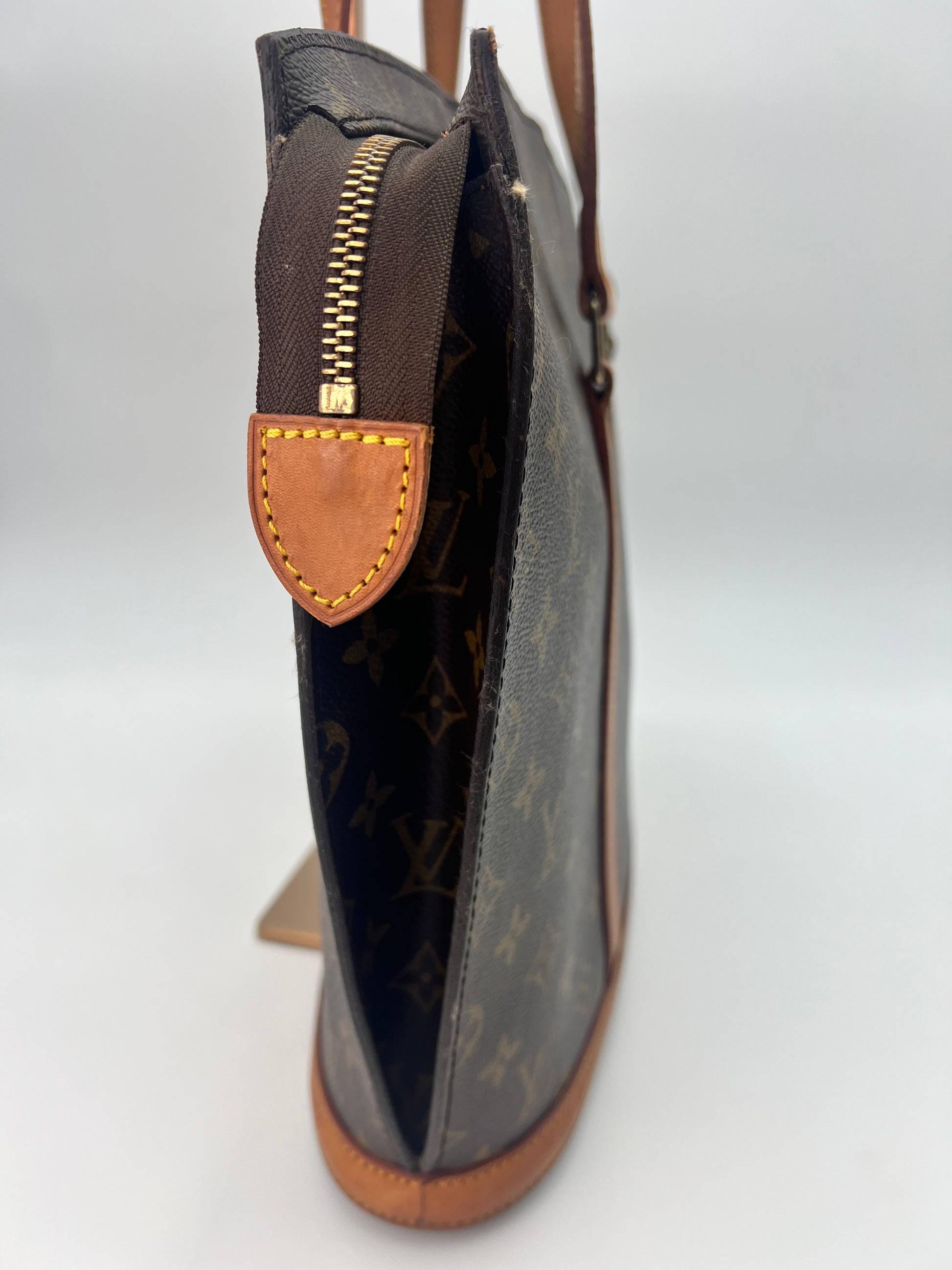 This Babylone tote is the perfect piece to grace your work attire or your best athleisure wear. It will transition seamlessly from day to night. The exterior canvas is in great condition, leather has a dark patina but is sturdy and in good condition. Light marks on the interior do not affect the function of the bag. The interior zipper pocket lining has been removed. Please review photos carefully and feel free to ask questions.