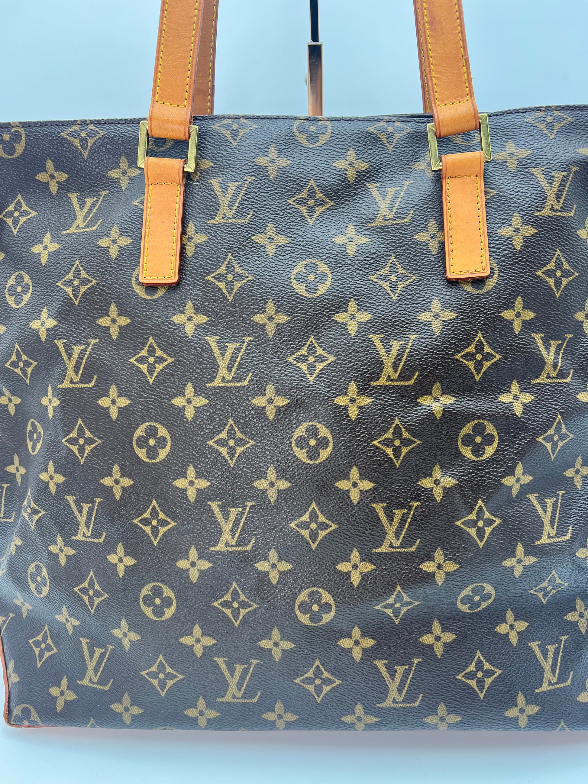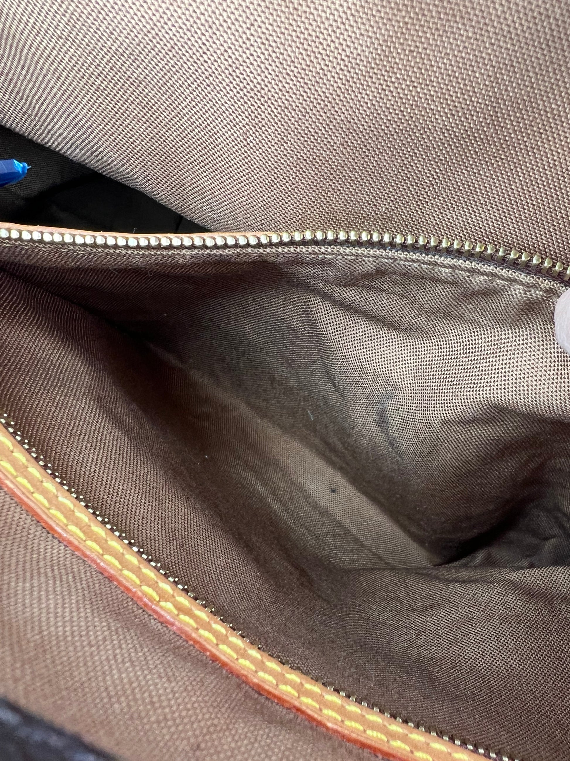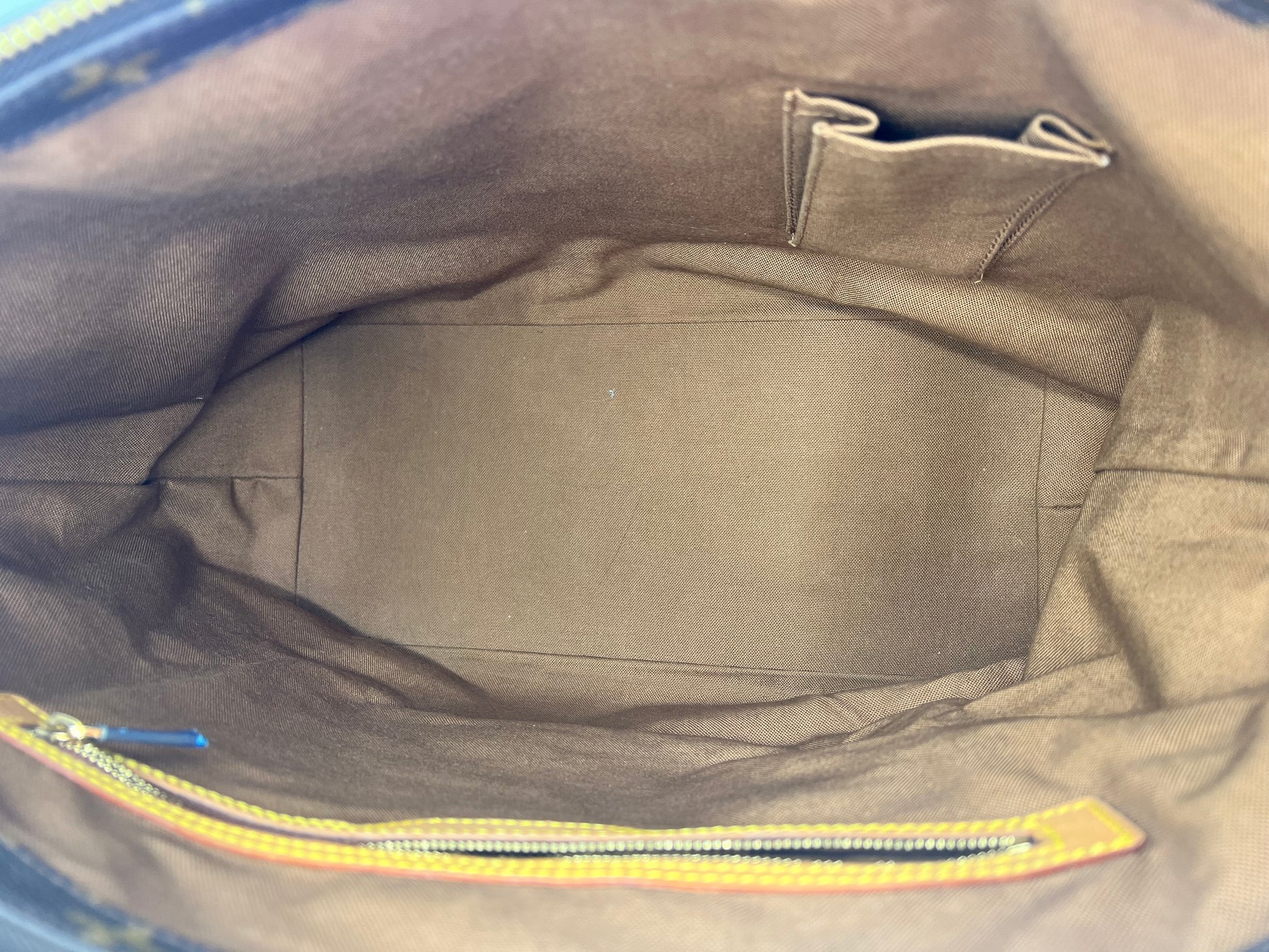Beautiful condition mid-large sized zip top tote. The canvas and leather handles are in great condition! Marks and water spots on the bottom of the bag. General loss of shape from storage over the years. Interior is clean and all pockets are functional. please review all photos carefully and feel free to ask questions.