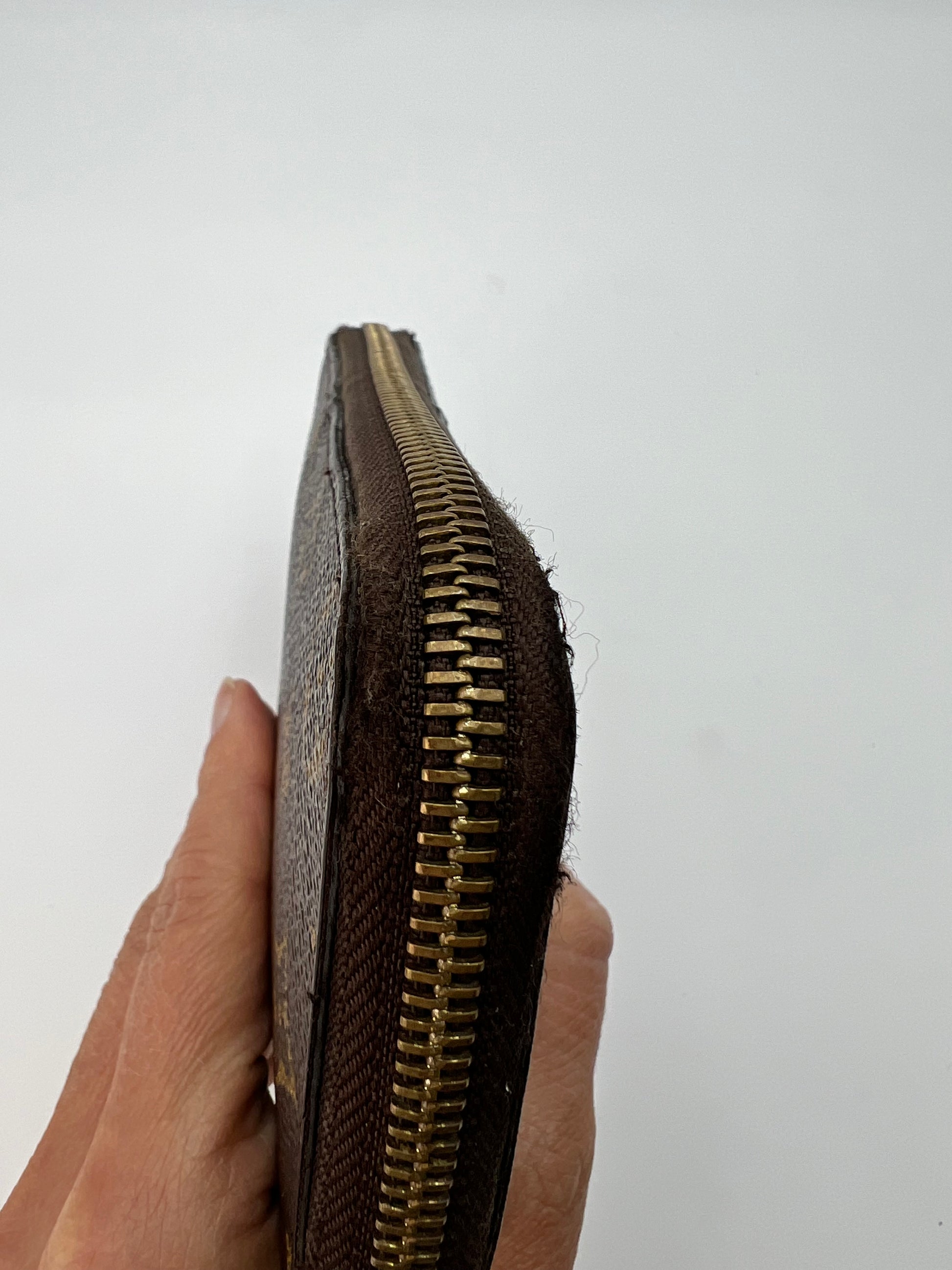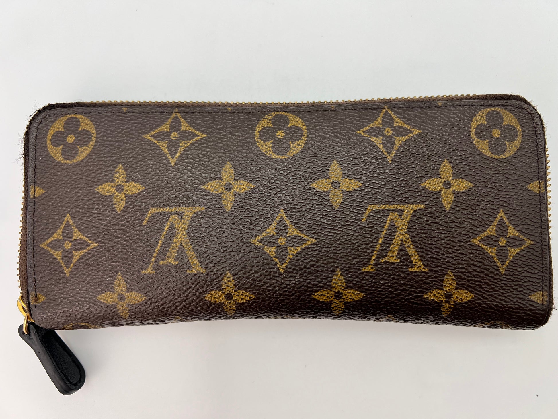 Louis Vuitton monogram Clemence wallet with mimosa interior. Replacement zipper pull and moderate wear to the exterior corners. Interior is like new!