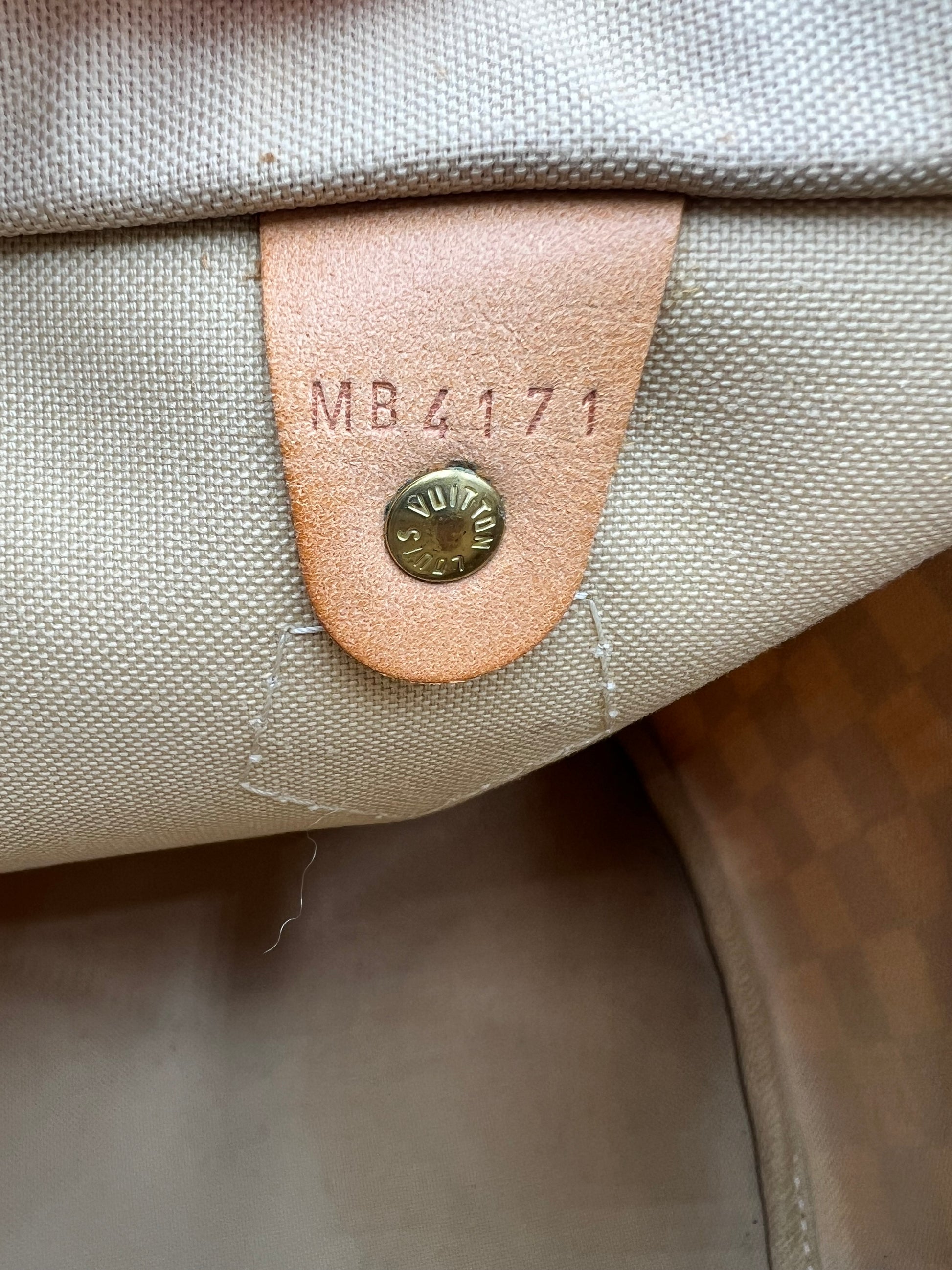 The Louis Vuitton speedy silhouette is classic and timeless. The Damier azure print and size of this bag in particular make it a sought after piece. The canvas is in great condition with light rubbing on the edges. The leather tabs are both torn and the handles have a very dark patina from use and age. The leather chaps show moderate wear, and at some point in its life, this bag may need a leather replacement (estimated at $400). Until then, there is plenty of life left in this vintage stunner! Please review all photos carefully and feel free to ask questions.