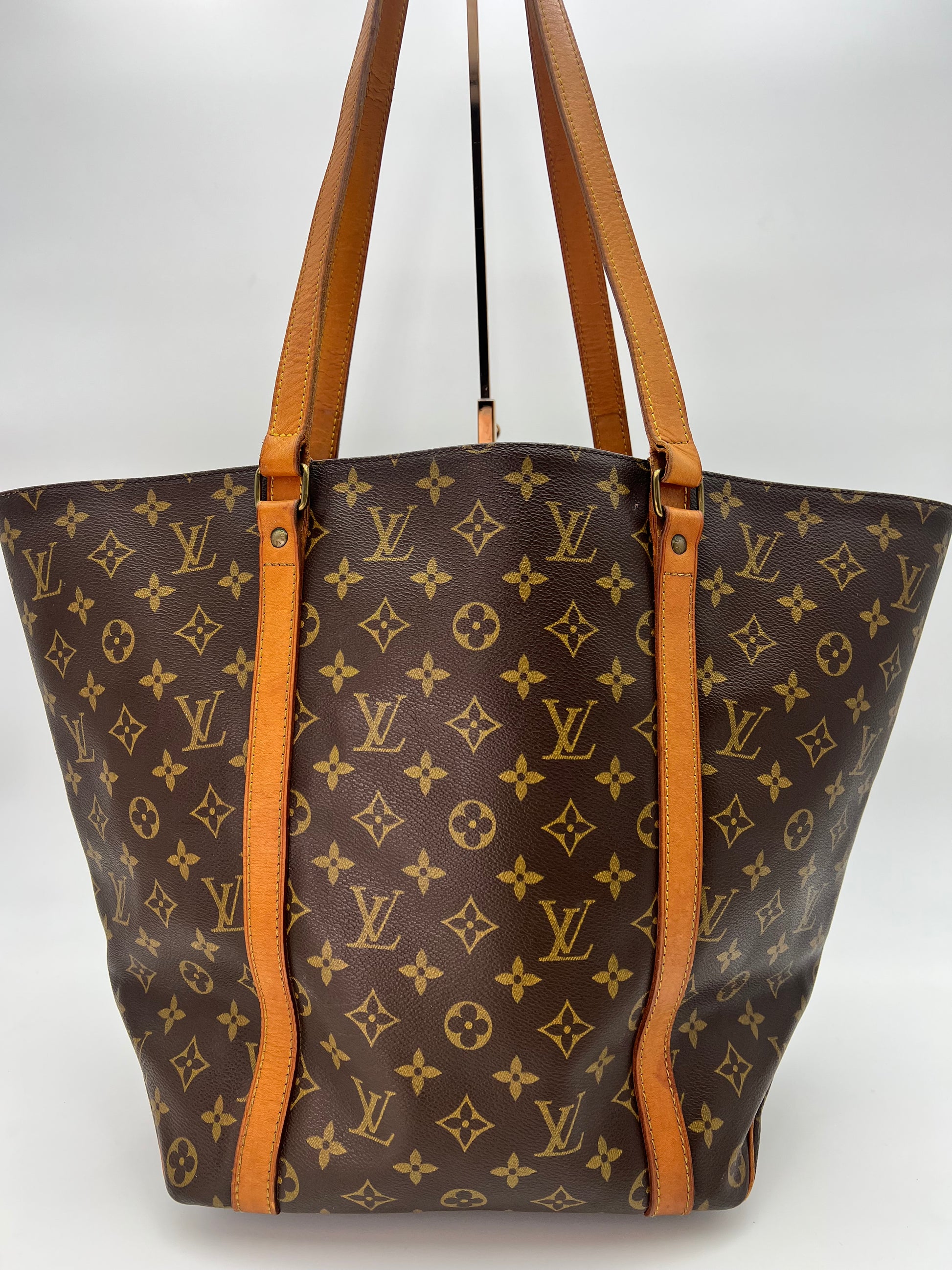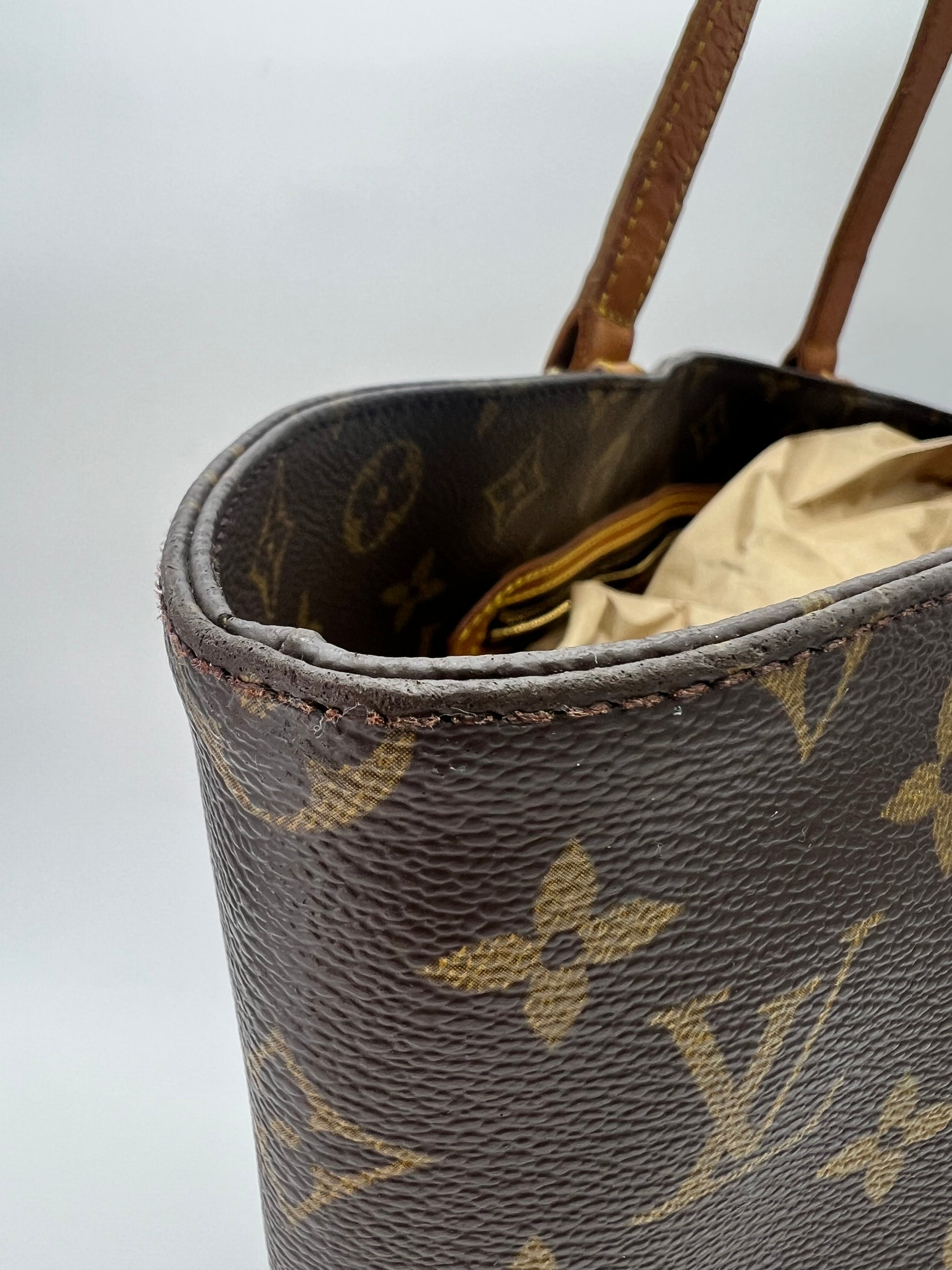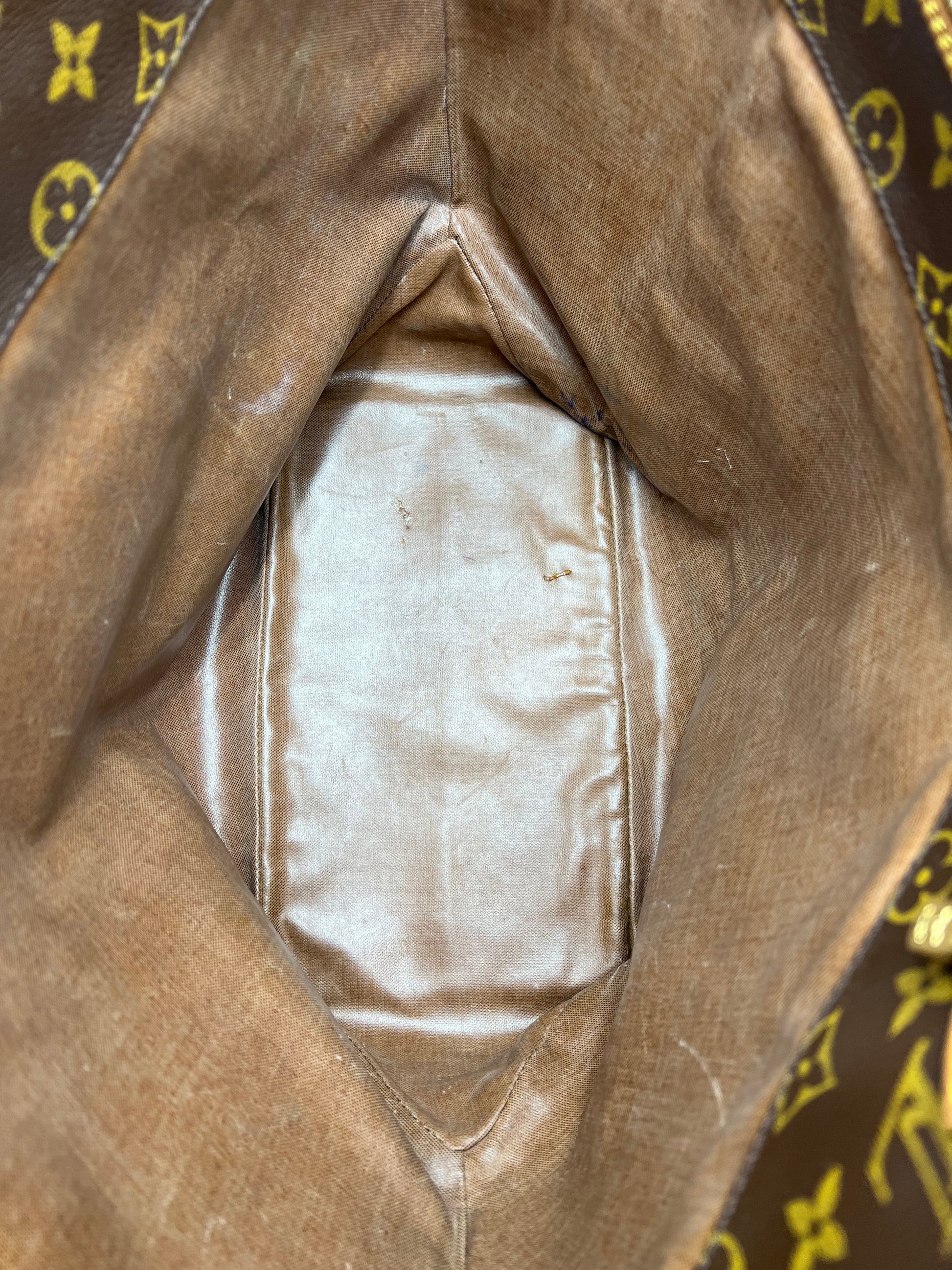 One of the most popular vintage pieces here at Vine Vintage! Reminiscent of the popular Neverfull, this is an open top tote with nice thick straps and a deep strap drop. There is moderate wear on the leather throughout and heavy patina in some areas. Drying of the leather on the handles, but the canvas is in beautiful condition and free from cracks. The coated canvas interior is easy to wipe clean and the interior pocket is clean and functional. Please review all photos carefully.