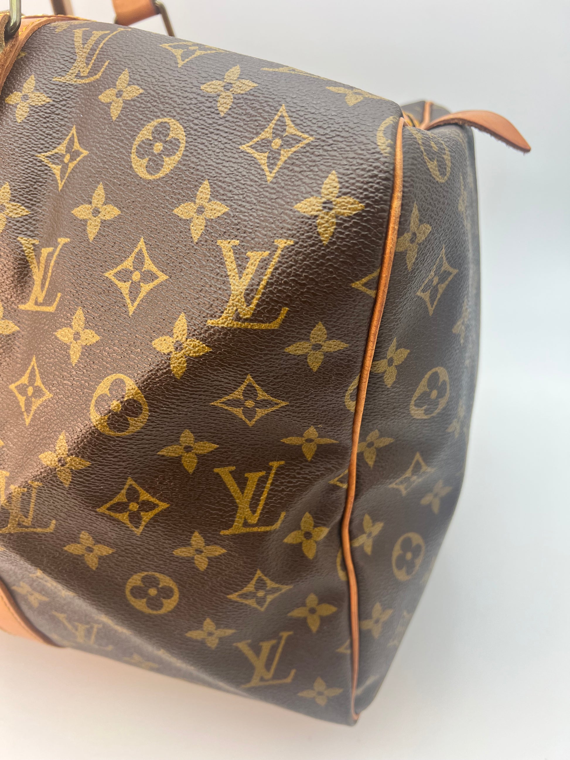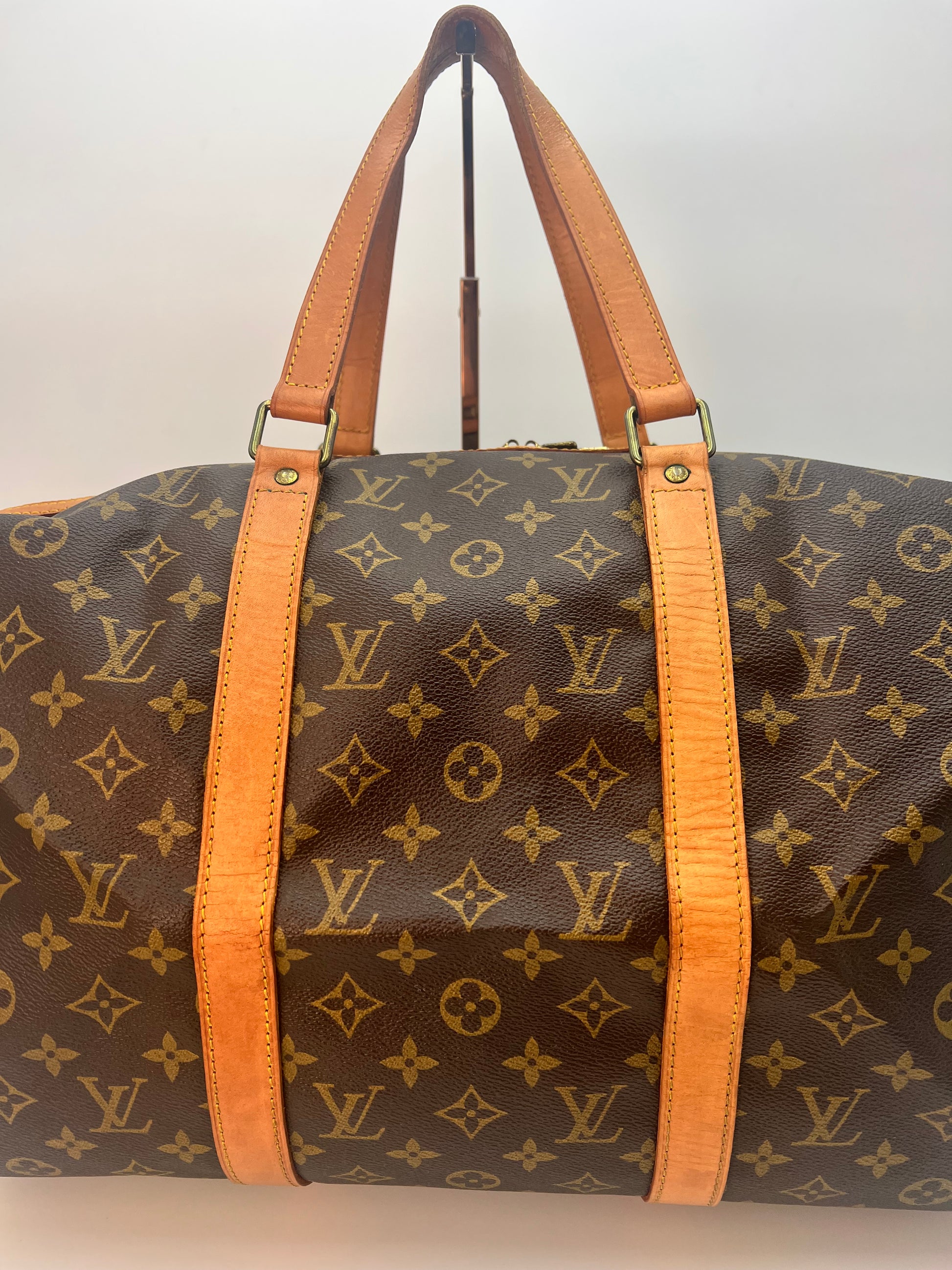The Sac Souple is an excellent alternative to the Keepall, with longer straps and more interior space due to the shape of the bag. There is moderate wear throughout on this piece, darkening of the leather and tarnishing on brass hardware. Overall, it’s in excellent condition, very clean and free of major imperfections or flaws. Has a beautiful vintage look and patina. Please review all photos carefully and feel free to ask questions.