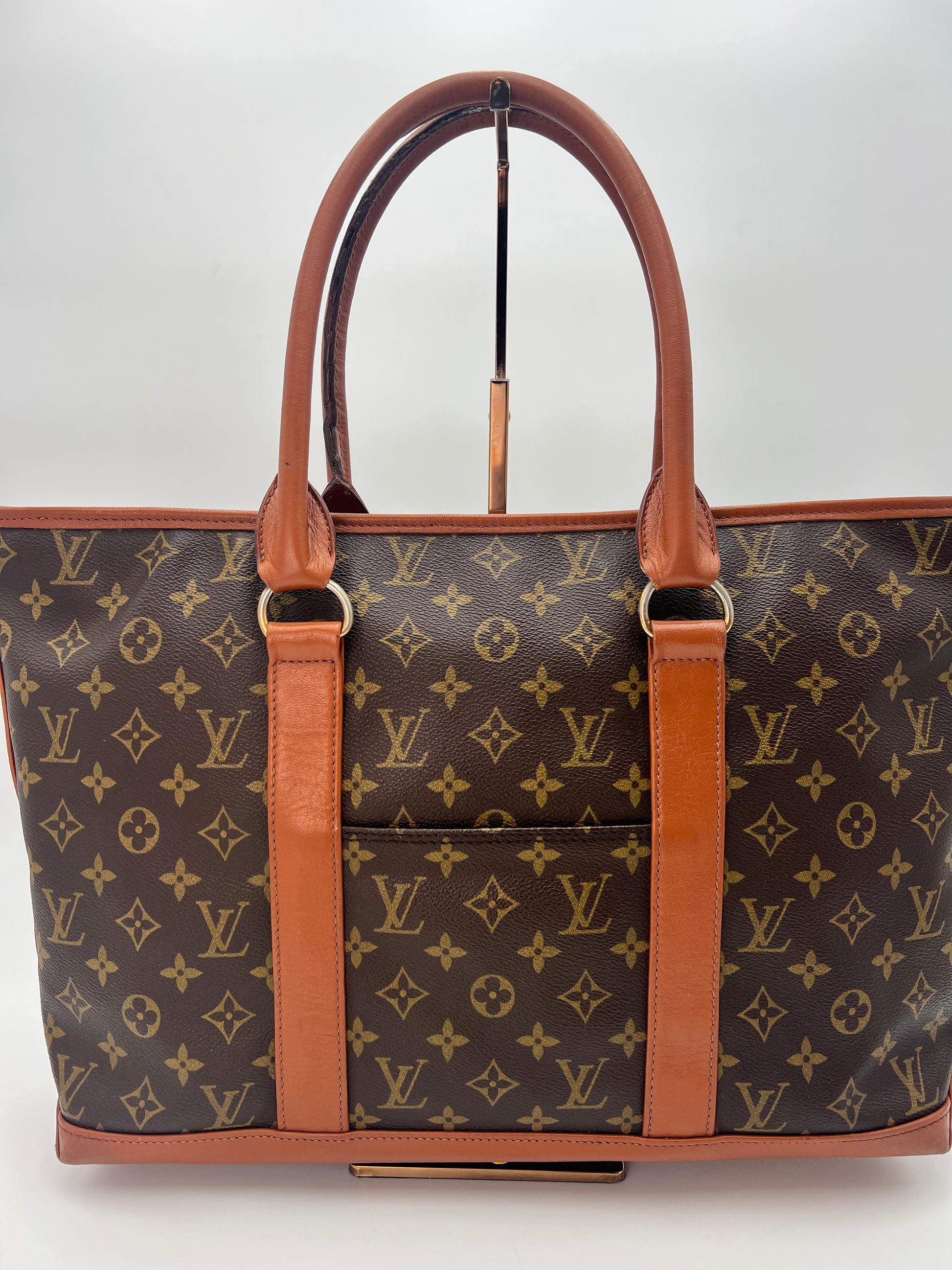 This weekender doubles as the perfect work bag and tote! The monogram canvas is in great condition, with moderate wear to the leather corners and handles. The interior is clean and all pockets and zippers are functional. Please review photos carefully and feel free to ask questions.