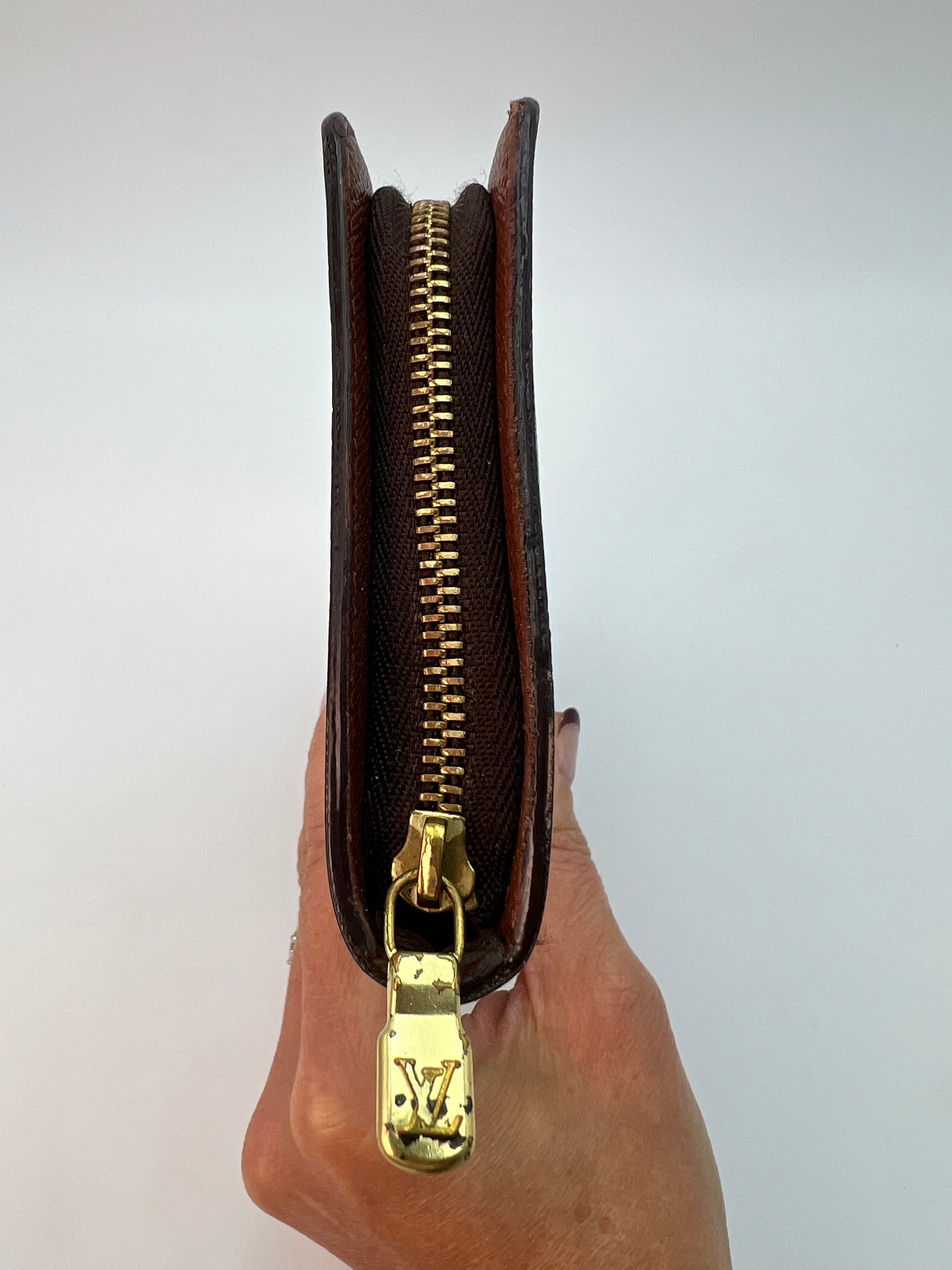 This vintage zippy wallet is in beautiful condition inside and out. Light wear along the edges and tarnishing on the zipper pulls. The exterior canvas is bright and the interior is clean and in excellent condition. A wristlet strap has been added (the wallet has been permanently altered). The strap can be removed and it will function as a stand alone wallet.