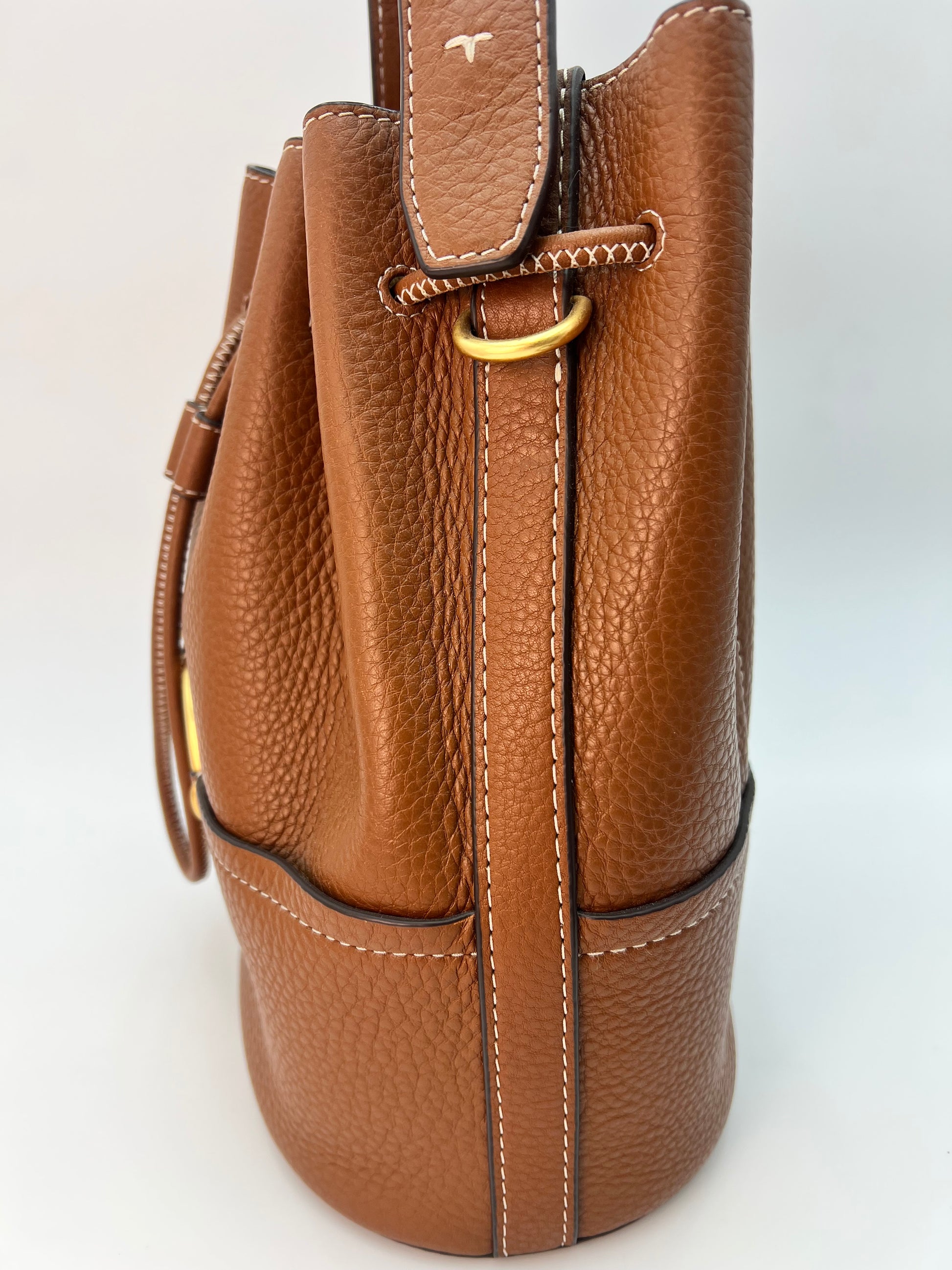 Like new, shows the slightest evidence of wear. Calf skin caramel leather, comes with braided crossbody strap. Stunning everyday handbag with many different carrying options. Please review all photos carefully and feel free to ask questions.