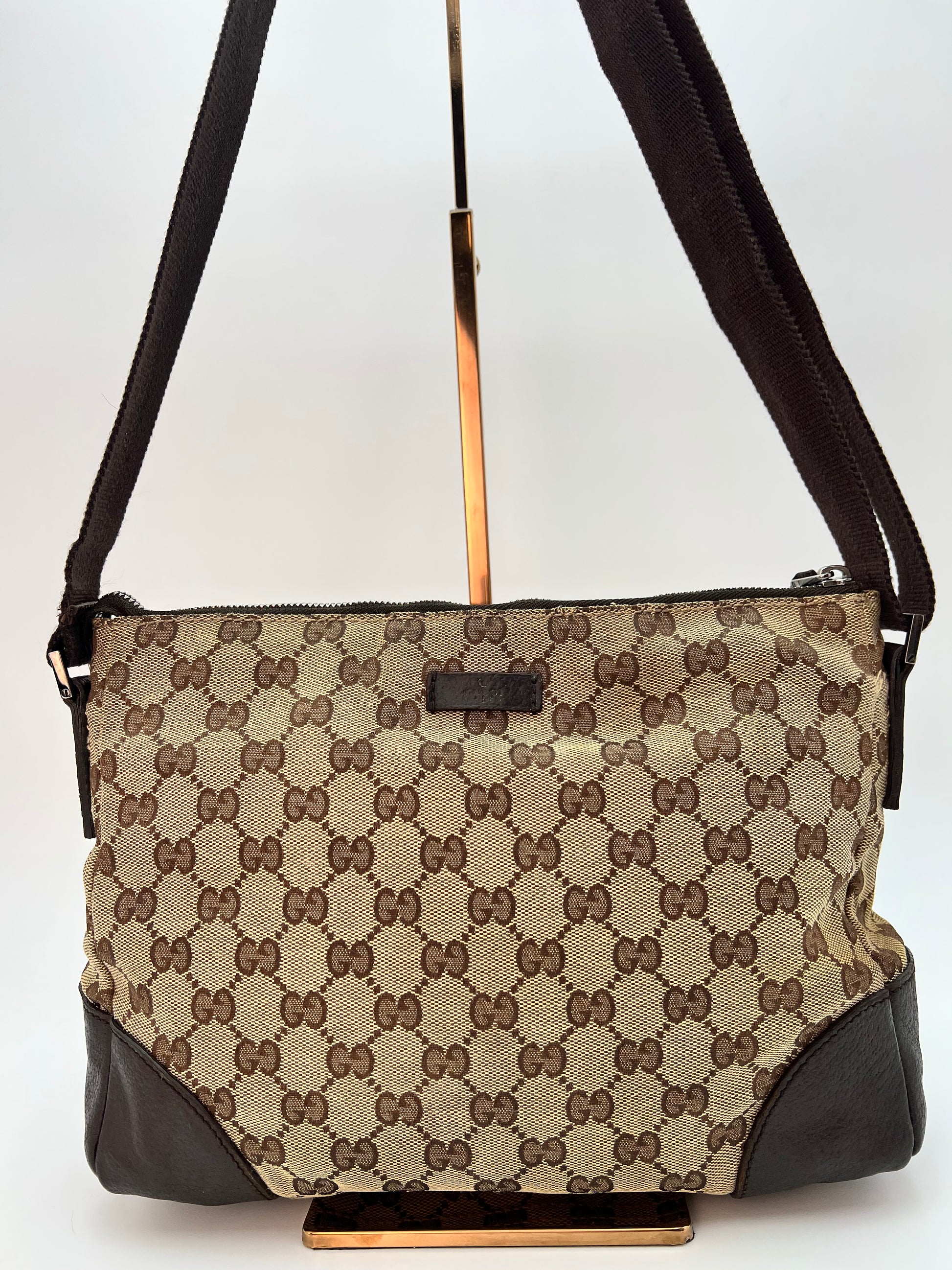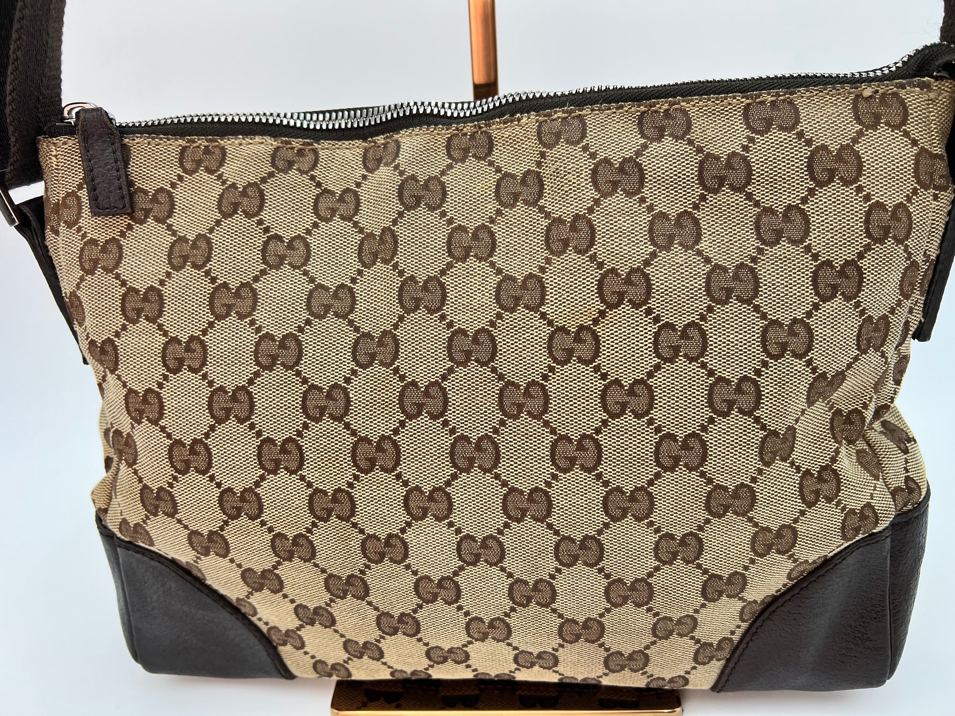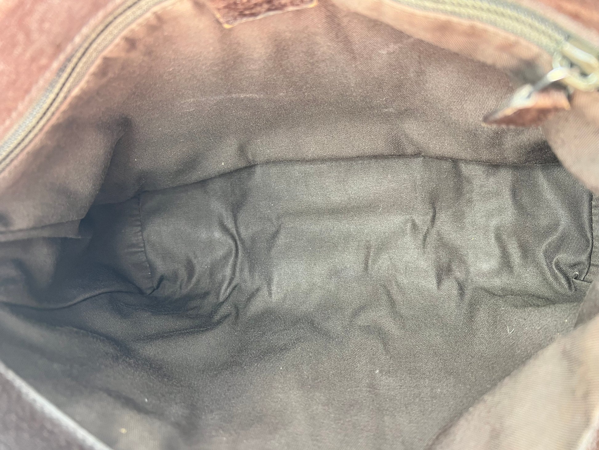 Moderate wear throughout, small stain on the back of the purse (see picture). Adjustable nylon strap is in good condition, zipper runs smoothly and the interior is clean and all pockets are functional. Please review photos carefully and feel free to ask questions.